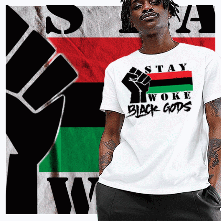 High Quality Stay Woke Black Gods Kemet Power Fist With Marcus Garvey Pan-African Flag Graphic T-Shirt. Ancient Egyptian word which translates to the “black land” or “the land of the blacks” Great Quality, Quick Shipping. Hoodie and tank top option available.