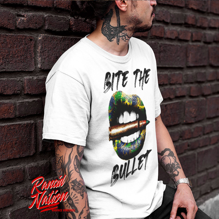 Introducing our bold and edgy "Bite the Bullet" T-shirt! With a unique design featuring camouflage lips biting a bullet, this tee embodies strength and resilience. Rancid Nation is the ultimate choice for urban streetwear, renowned for our unparalleled quality and style. As a brand favored by trendsetters worldwide, we pride ourselves on delivering top-notch products that make a statement. Showcasing your individuality has never been easier. Join the Rancid Nation movement and let our clothing empower you to conquer any challenge. With each wear, embrace your fearless spirit. Stand out from the crowd and seize the day with our exceptional streetwear. Experience Unmatched Comfort and Quality with Rancid Nation's Graphic T-Shirts. Crafted from Premium Soft Style Ringspun Cotton, our shirts offer a Luxuriously Soft Feel against your skin. Embrace Superior Comfort and Durability without compromising on Style. Elevate your Wardrobe with Rancid Nation's Finest Graphic Tees.