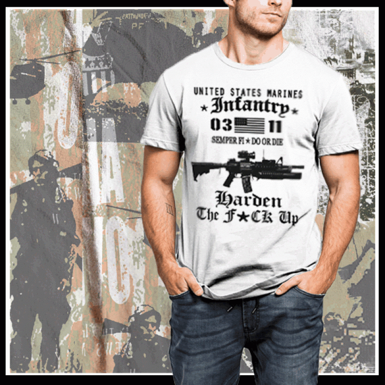 US Marines T-Shirt Harden The Fuck Up Quote Military Veteran Combat Tee. Clear Image Custom Design Great Quality Quick Shipping.