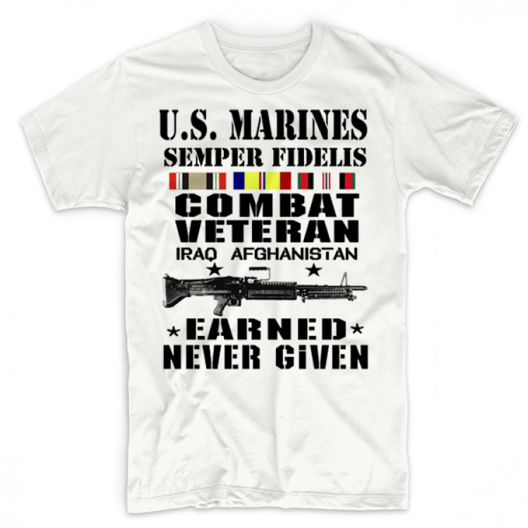 US Marine Combat Veteran Iraq and Afghanistan War Campaign Ribbon T-Shirt. Clear Image, Non Textured Print, Great Quality Cotton Tee, Quick Shipping.
