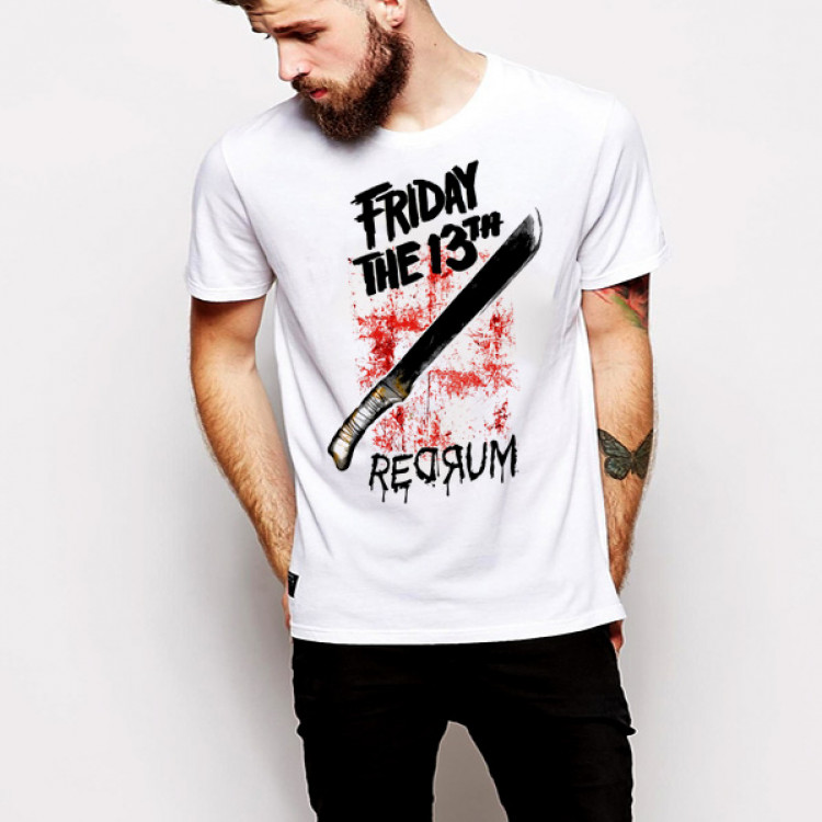 Friday the 13th t-shirt jason machete blood smear REDRUM