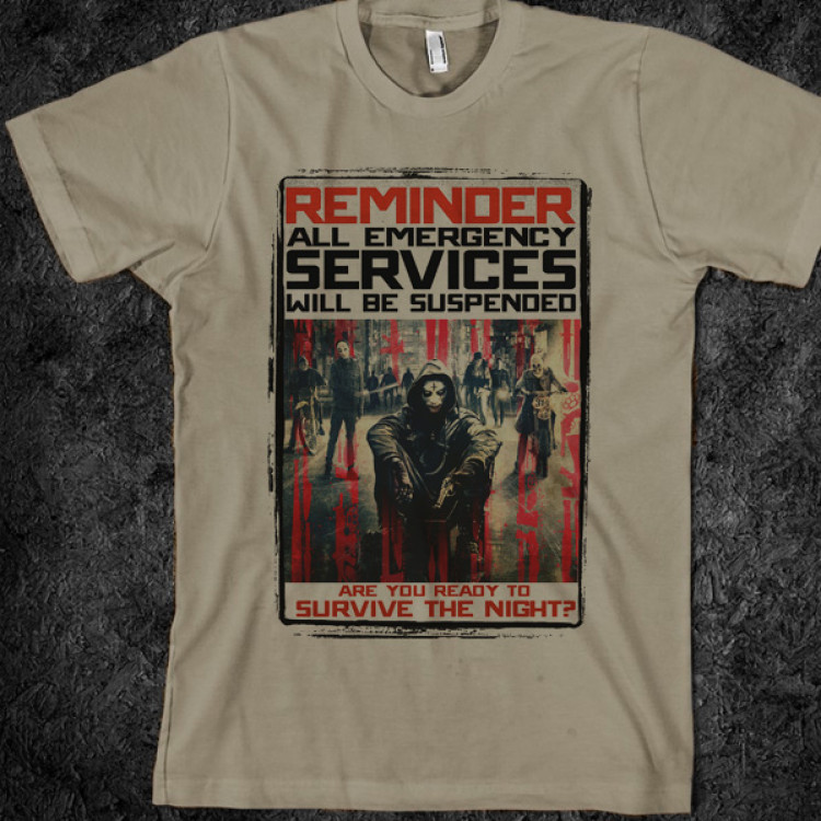 The Purge U.S. Flag of Guns Survive The Night T-Shirt. The Purge Public Service Announcement T-Shirt.The Movie is based on a future dystopian America where all crime is made legal once a year. Digitally Printed on soft superior 100% Cotton, Triblend, 50/50 premium Soft Style Quality T-shirts. Not Slim Fit Size XXL is Heavy Cotton. The Design Is Blended into the fabric of the shirt, No Peeling or Cracking High Quality Print.