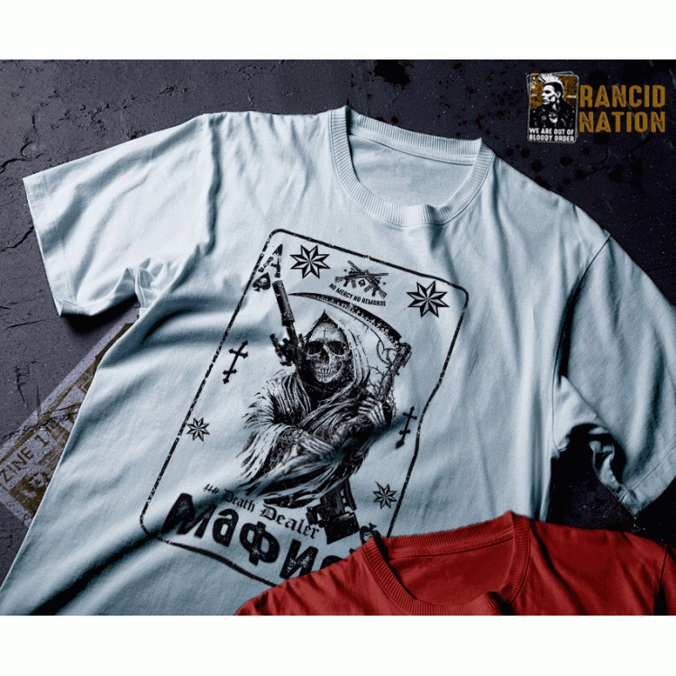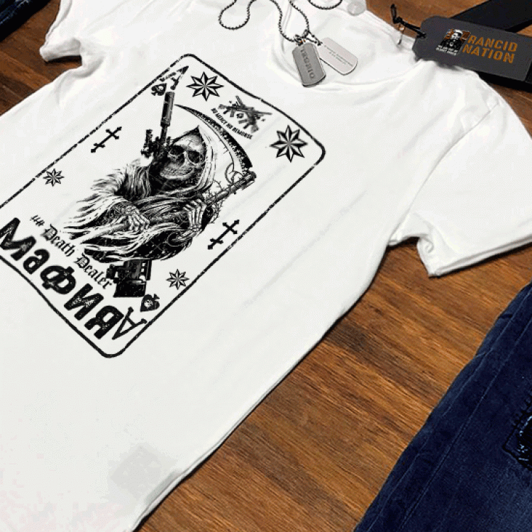Russian Criminal Tattoo T-Shirt. In the world of Russian organized crime, a Vory v Zakone Grim Reaper tattoo with the phrase "Death Dealer" holds significant symbolism and meaning: